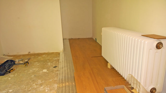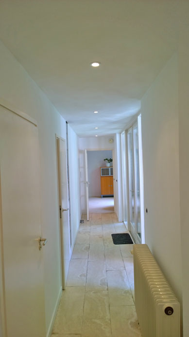 voorzien van spots. In 1 ruimte laminaat gelegd en alle ruimtes in de aanbouw